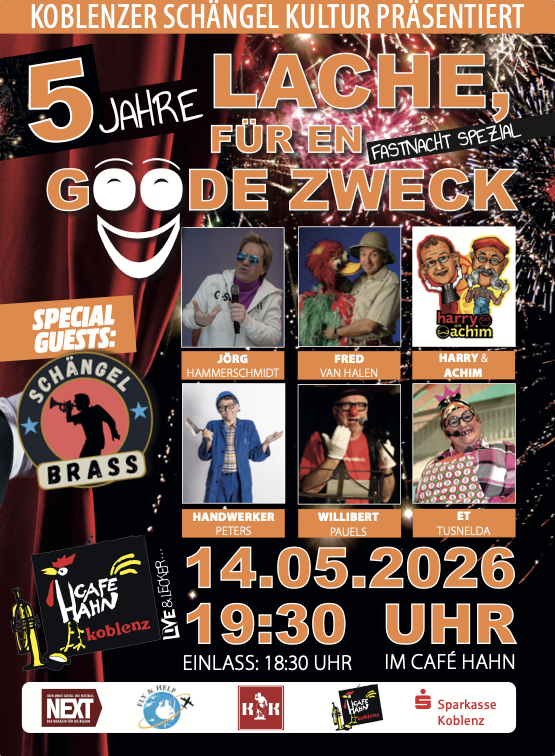 Hinter den bekannten Koblenzern "für en goode zweck"-Veranstaltungen stecken wir! Hier spenden wir den Erlös an gemeinnützige Vereine, Stiftungen o. Ä.